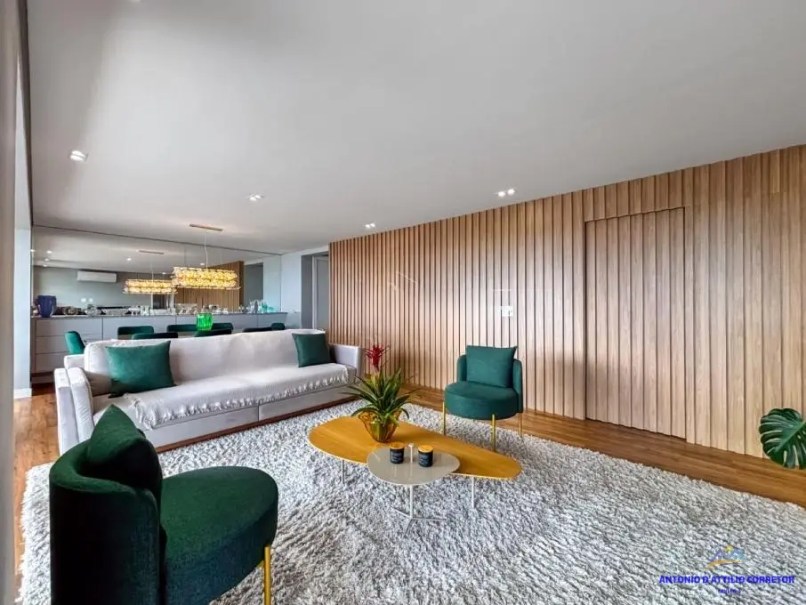 A área social é um dos grandes destaques, com sala integrada ao living, criando um espaço amplo, iluminado e convidativo. O imóvel está totalmente mobiliado, com móveis planejados de excelente qualidade, além de um living belíssimo que harmoniza com o estilo contemporâneo da unidade.