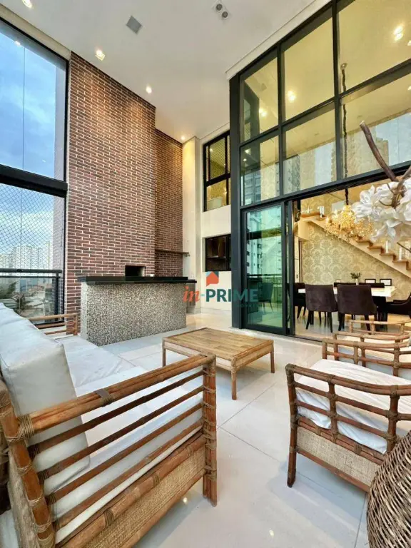 Apartamento Alto Padrão com 3 Suítes amplas e confortáveis. Sala ampla com varanda gourmet toda envidraçada. Finamente mobiliado ambiente charmoso e sofisticado com pé direito de 6 metros. Mezanino com sala de cinema.