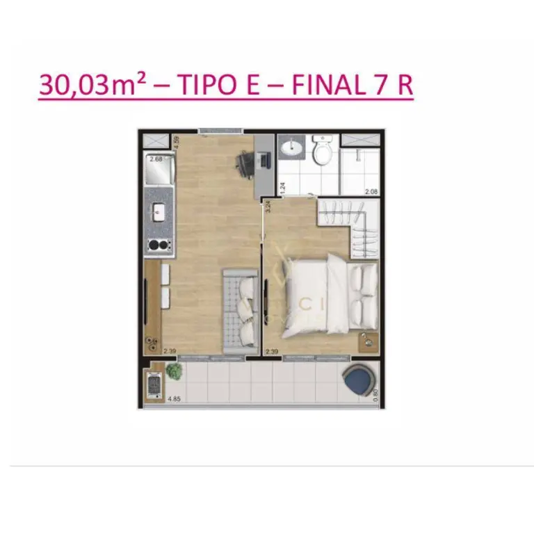 Apartamentos novos a partir de 30 m² distribuídos por 01 sala ampla, 01 cozinha arejada, 01 dormitório, 01 banheiro social; com varanda e sem vaga de garagem.