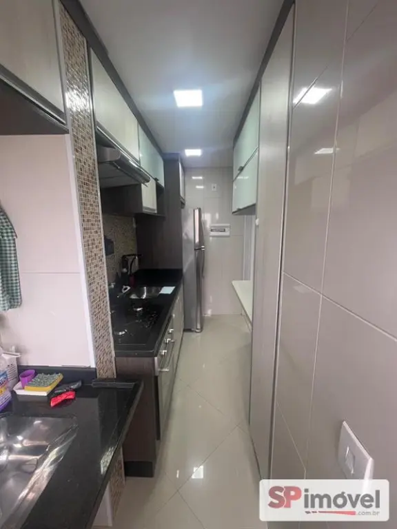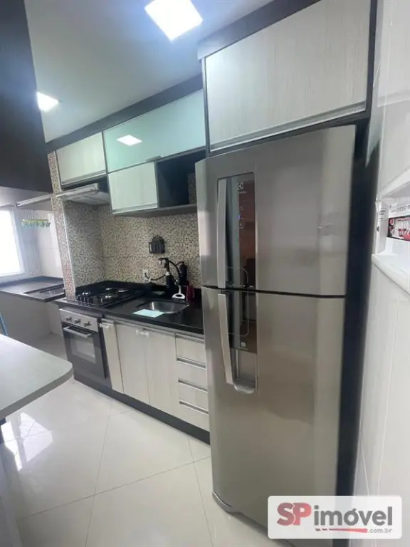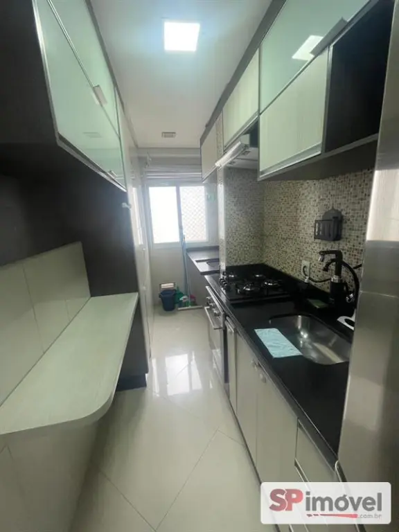 Apartamento com cozinha com forno, cooktop, sugar, área de serviço com varal embutido, quarto principal com cama box, lustre e persiana, segundo quarto com guarda-roupa grande, lustre e persiana.