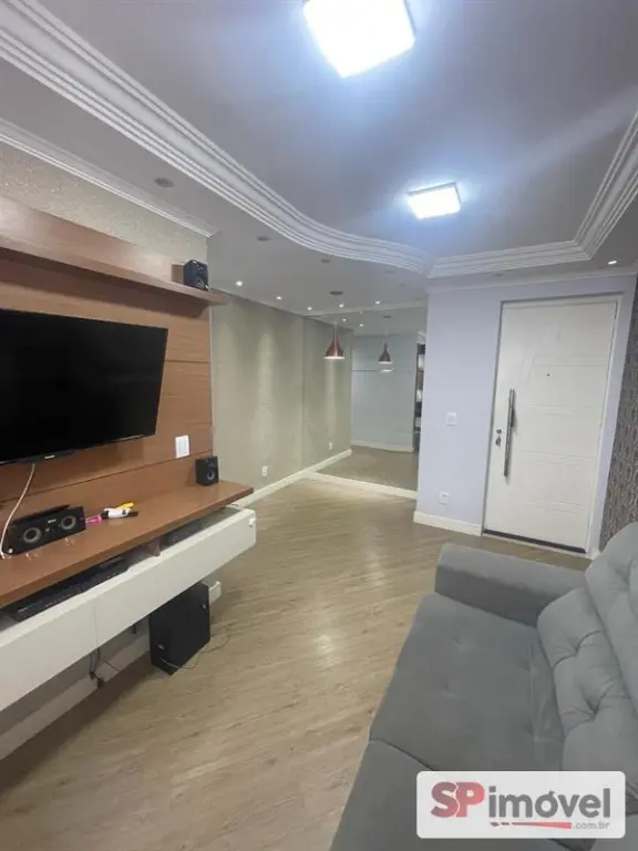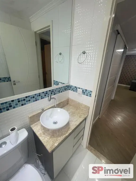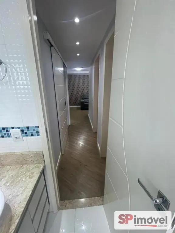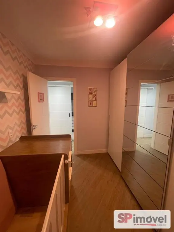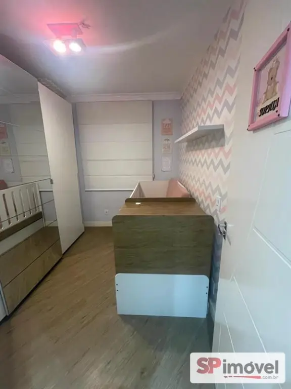 Imóvel está quitado, reformado, com móveis planejados e papel de parede.