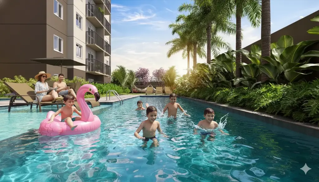 A presença de lazer completo agrega valor e qualidade de vida para o morador.