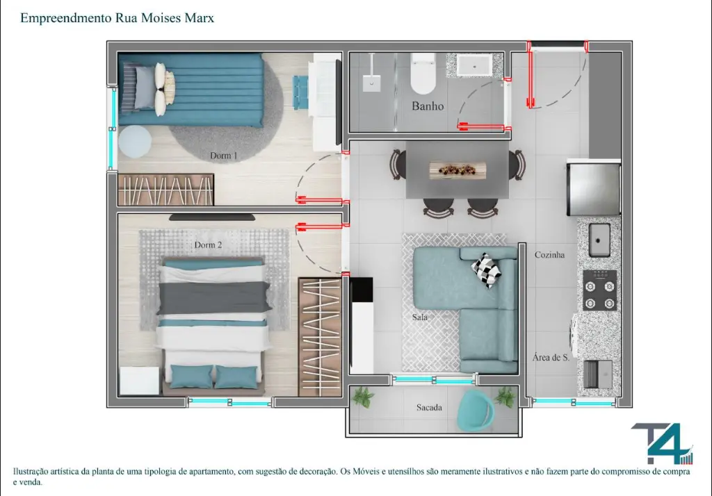 02 dormitórios, sala com sacada, cozinha. banheiro.