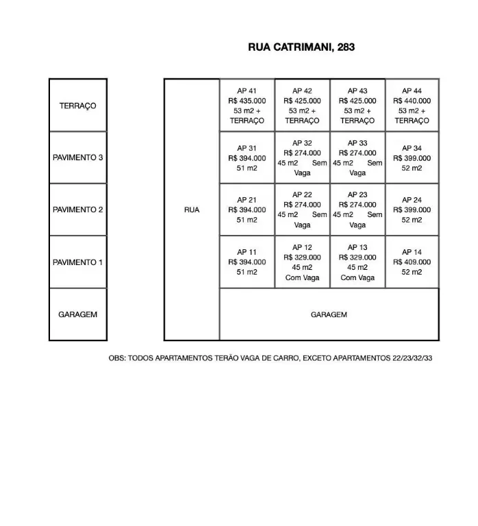 Com e sem vaga (Vide tabela)