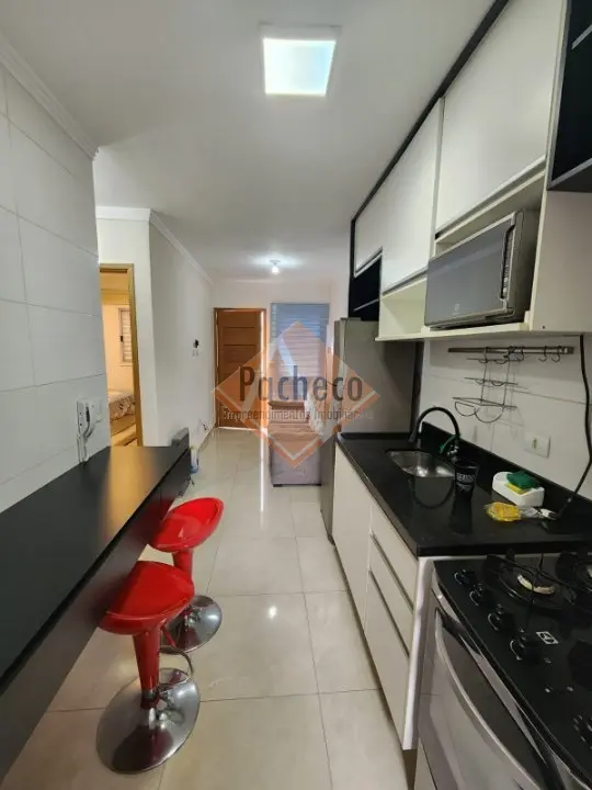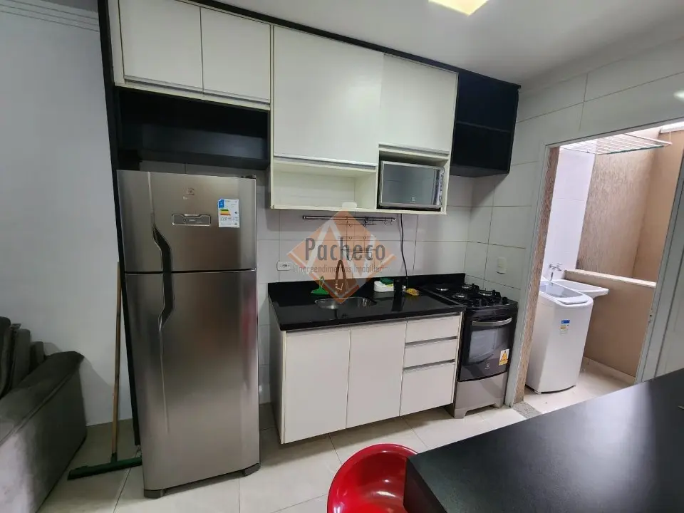 Apartamento na Penha de França, 2 dormitórios com camas de casal e solteiro, cozinha com armário planejado com fogão, geladeira, micro ondas, área de serviço com máquina de lavar, 1 vaga coberta, 39 m² de área útil