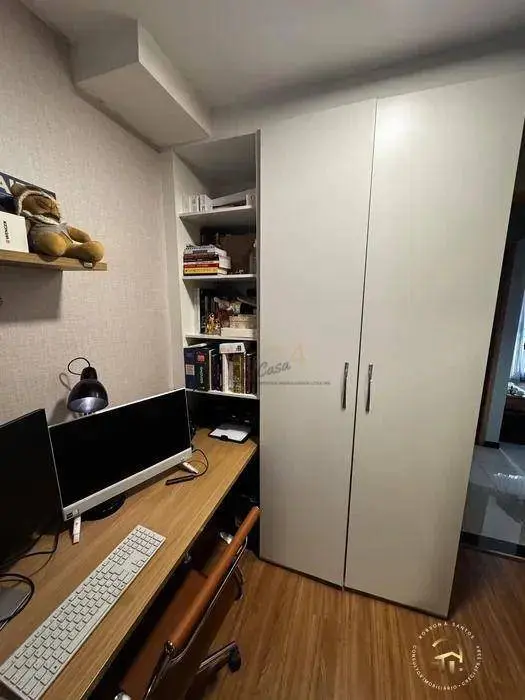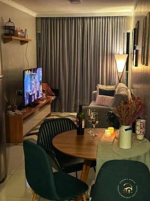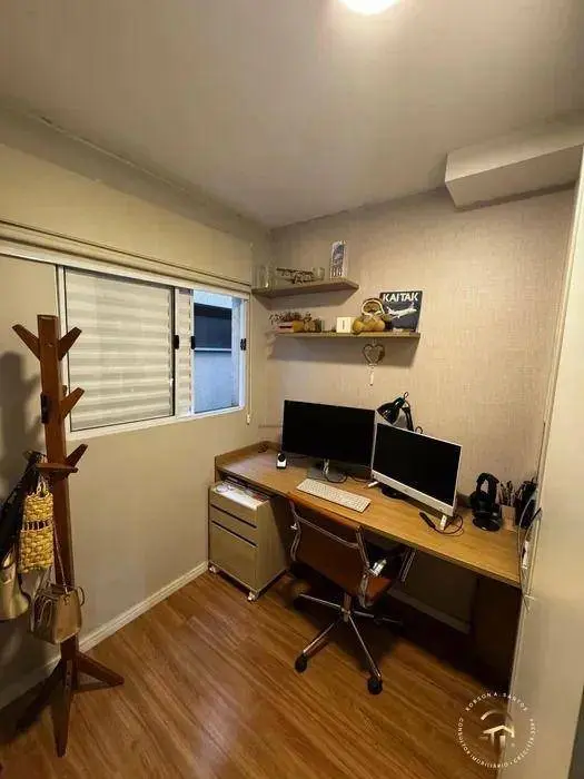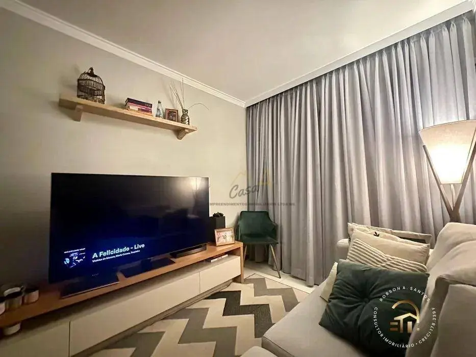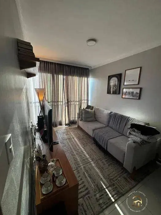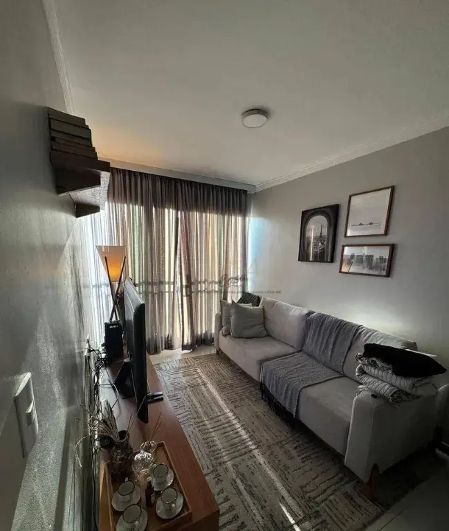 Apartamento com 43m² com 2 dormitórios planejados, sala com sacada, cozinha planejada. banheiro com box de vidro. Área de serviço e 1 vaga coberta. Prédio com elevador