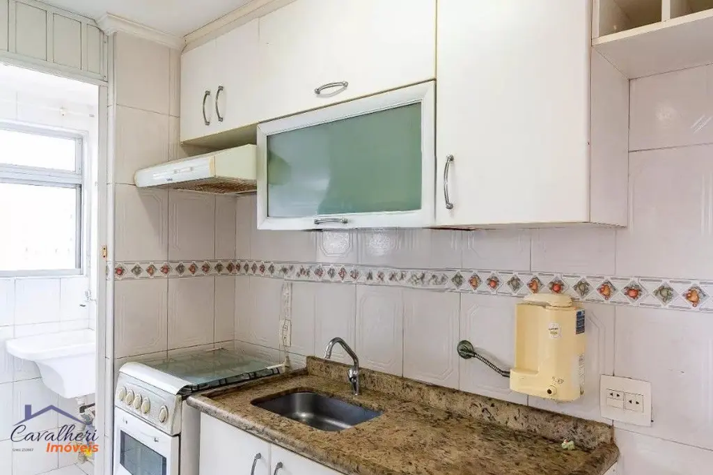2 Dormitórios com armários, sala 2 ambientes, cozinha com armário, banheiro, área de serviço e 1 vaga de garagem coberta.