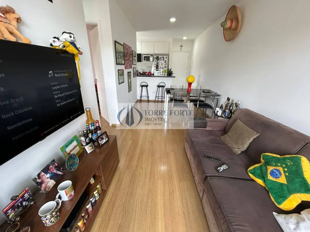 O apartamento possui uma planta otimizada e bem distribuída com 50m² úteis, com 2 dormitórios, 1 banheiro, 1 vaga coberta, sala 2 ambientes, cozinha americana com armários, área de serviço e varanda.