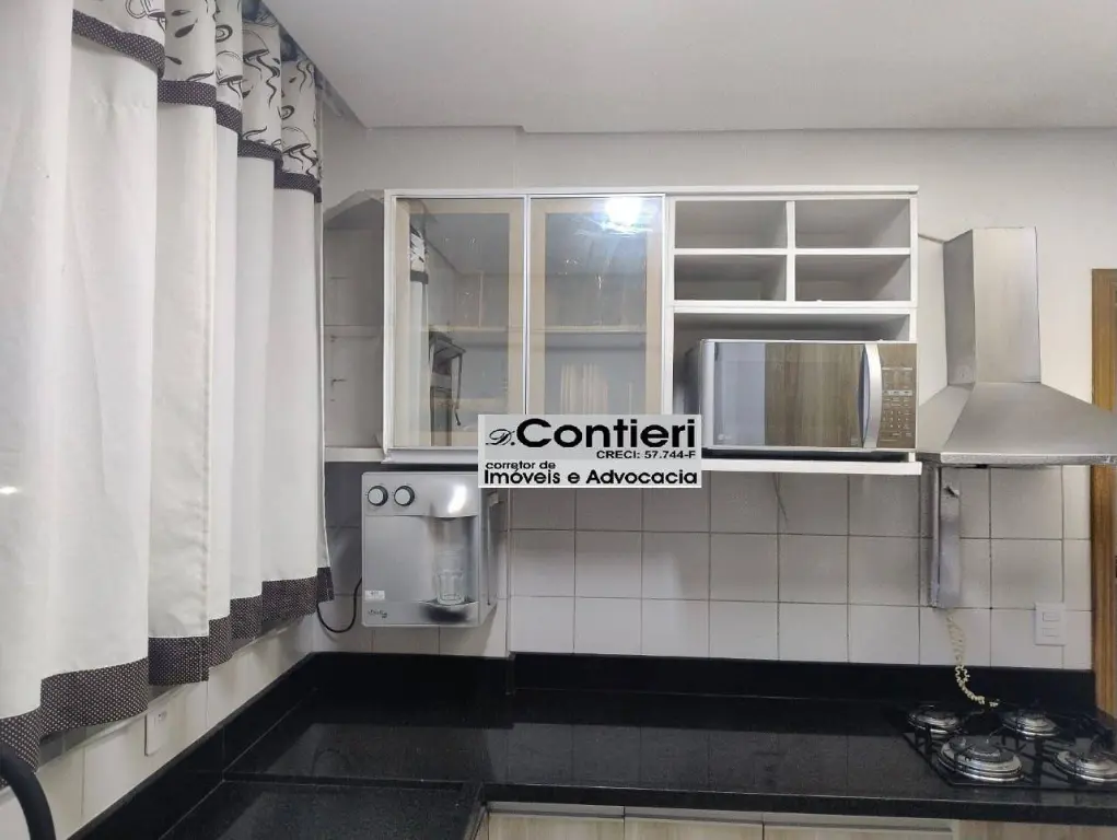 Armários embutidos, cozinha com armário e fogão, teto rebaixado com gesso.