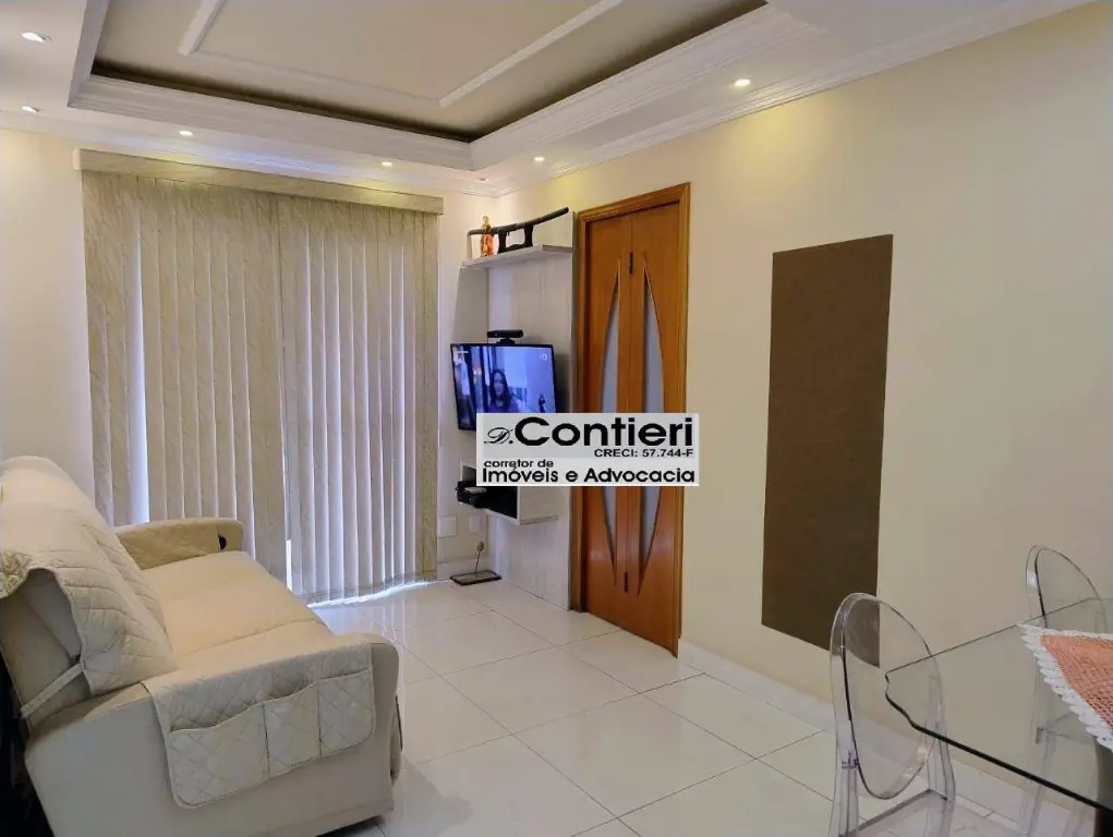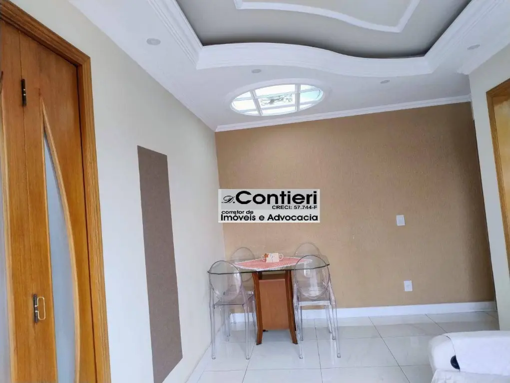 2 dormitórios, sala de jantar, sala de estar, cozinha, banheiro, área de serviço e 1 vaga de garagem.