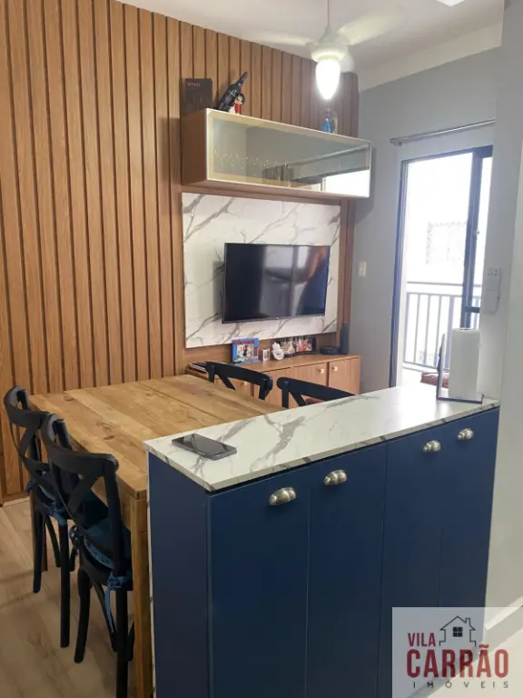 Excelente apartamento, com 2 dormitórios, banheiro social, sala 2 ambientes, cozinha planejada em estilo americano, área de serviço e uma linda VARANDA.