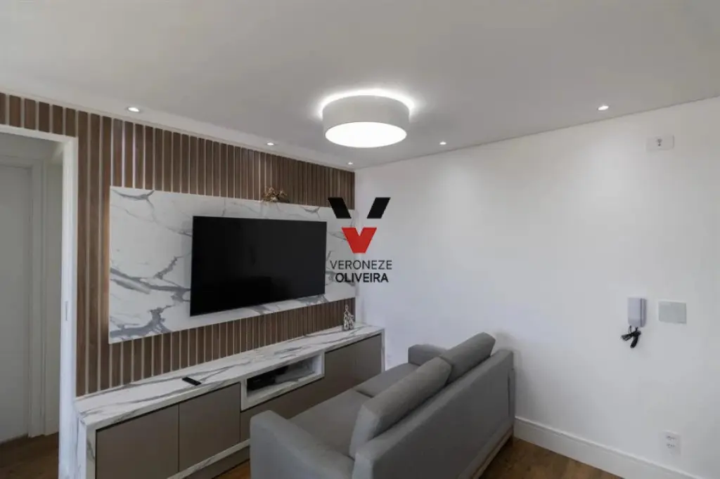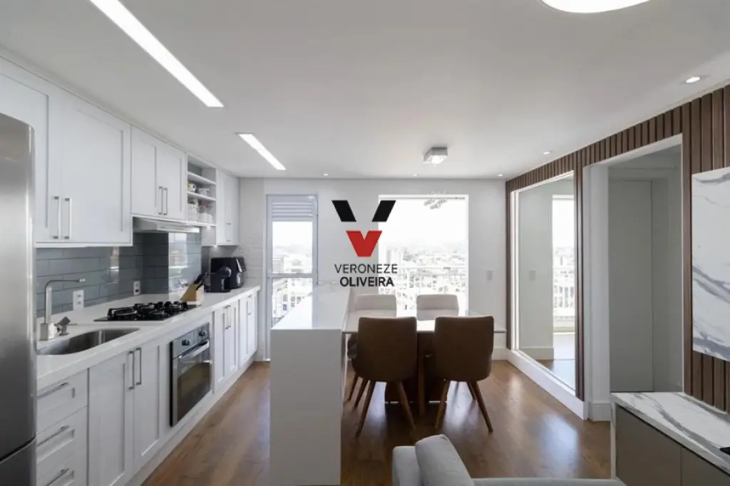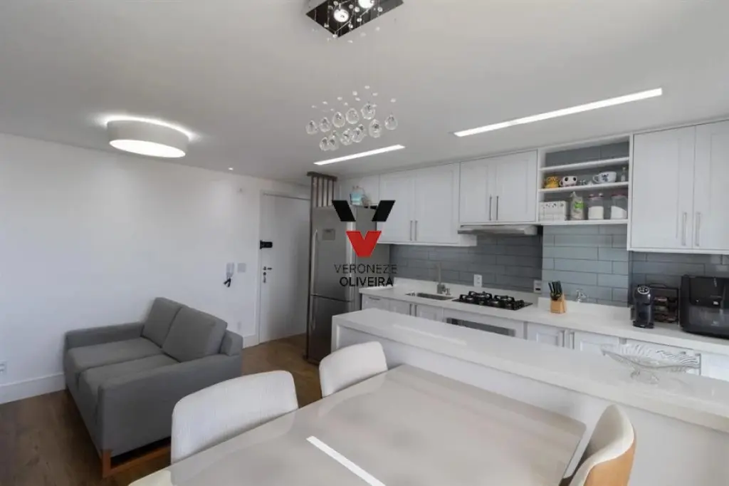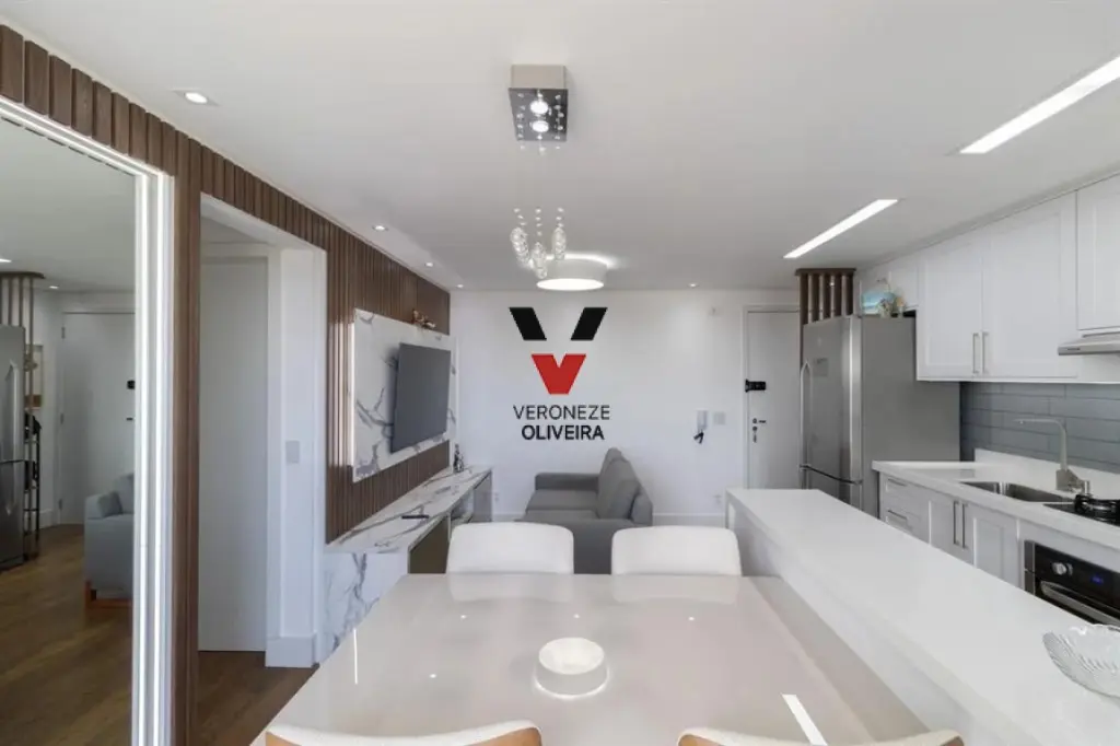 Apartamento com 02 dormitórios com planejados, sala ampla com 02 ambientes e varanda fechada com vidro retrátil que recebe e sol da manhã, 01 banheiro com planejados, cozinha com planejados, área de serviço e 01 vaga de garagem.