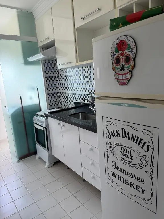 Tem área de lazer com piscina, academia, salão de festas e churrasqueira;