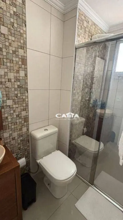 Banheiro com box de vidro.