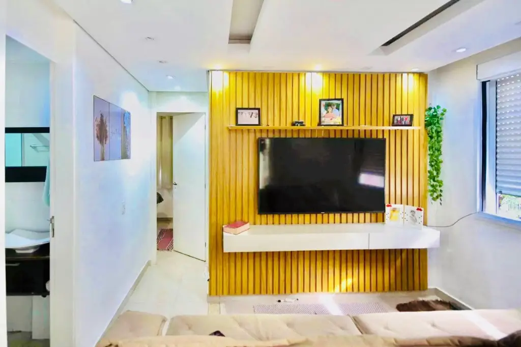 - Sala de tv com painel de televisão planejada.