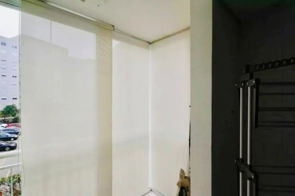 - Varanda com fechamento de vidro integrada com a sala.