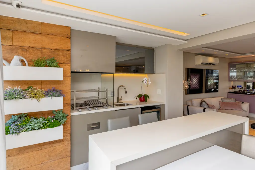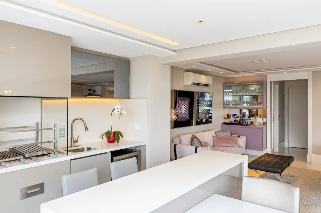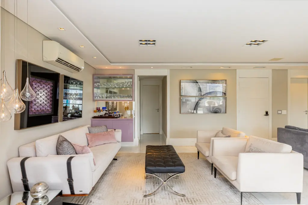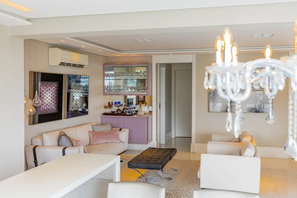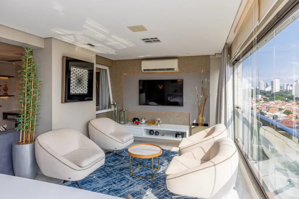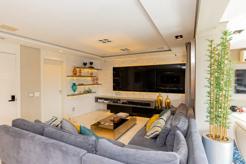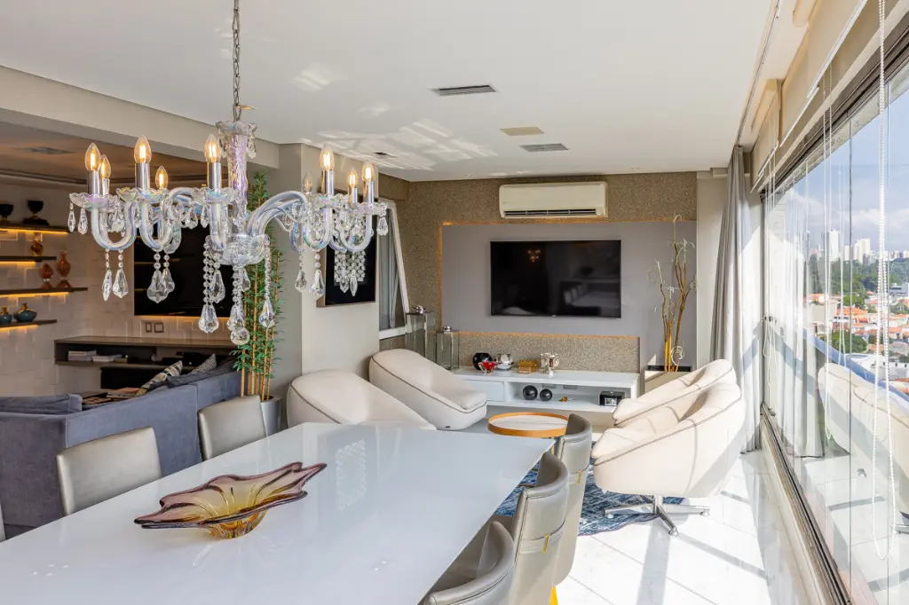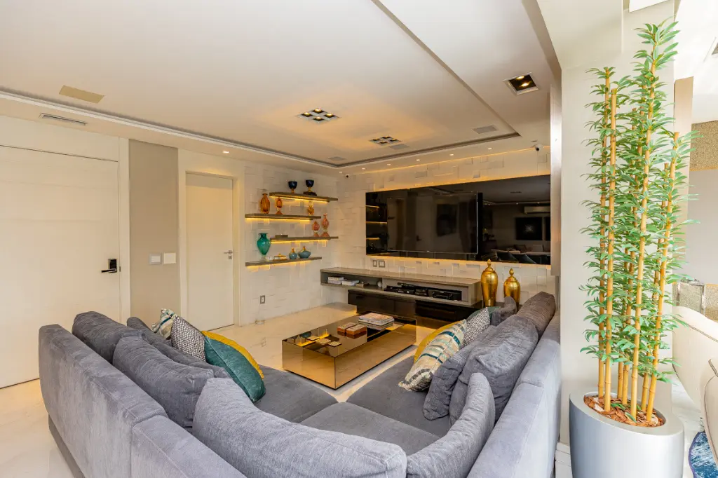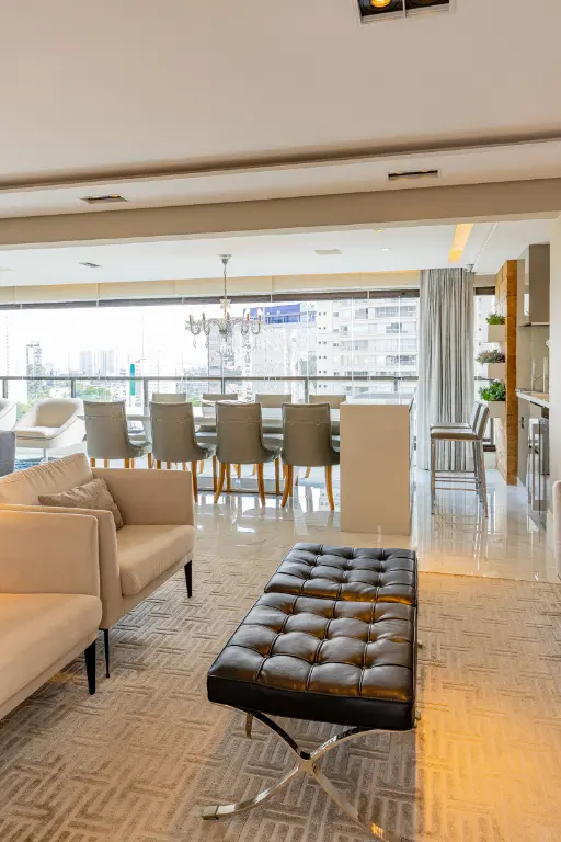 Lindo apartamento de alto padrão com 209m², localizado em condomínio clube, em andar alto, com hall privativo, que une sofisticação, conforto e tecnologia. A área social é composta por uma ampla sala para dois ambientes integrada à varanda gourmet com churrasqueira, ideal para receber com elegância. O ambiente é finamente decorado, com piso em porcelanato e conta com automação completa de áudio, vídeo e iluminação, além de ar-condicionado em todos os ambientes, proporcionando praticidade, conforto térmico e bem-estar no dia a dia.