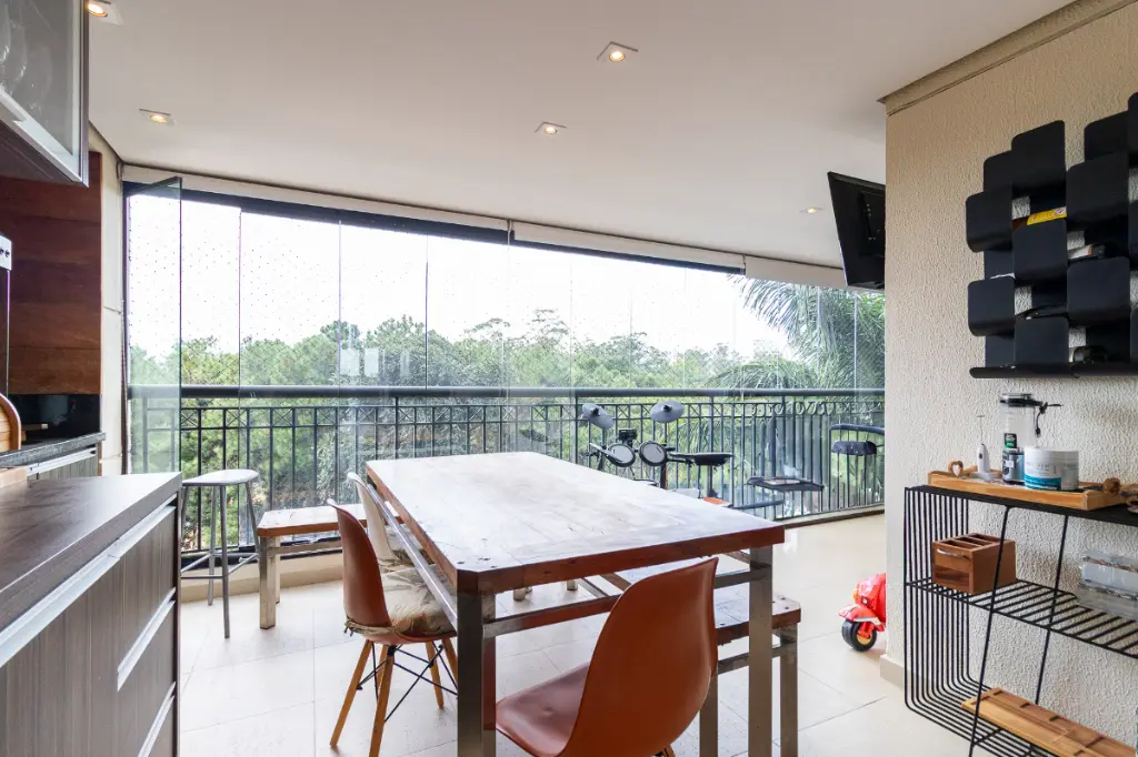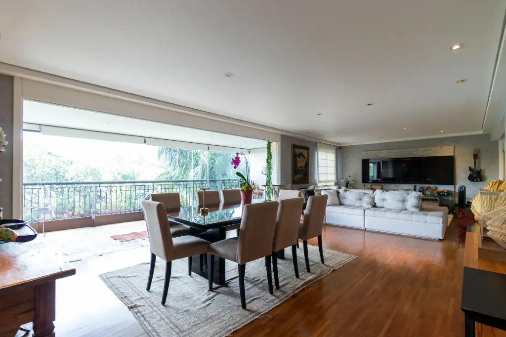 Uma ampla sala de estar e jantar servido por um lavabo, se abrindo para a varanda com espaço gourmet/churrasqueira com vista definitiva da Hípica Santo Amaro, lugar perfeito para receber amigos e se divertir com sua família.