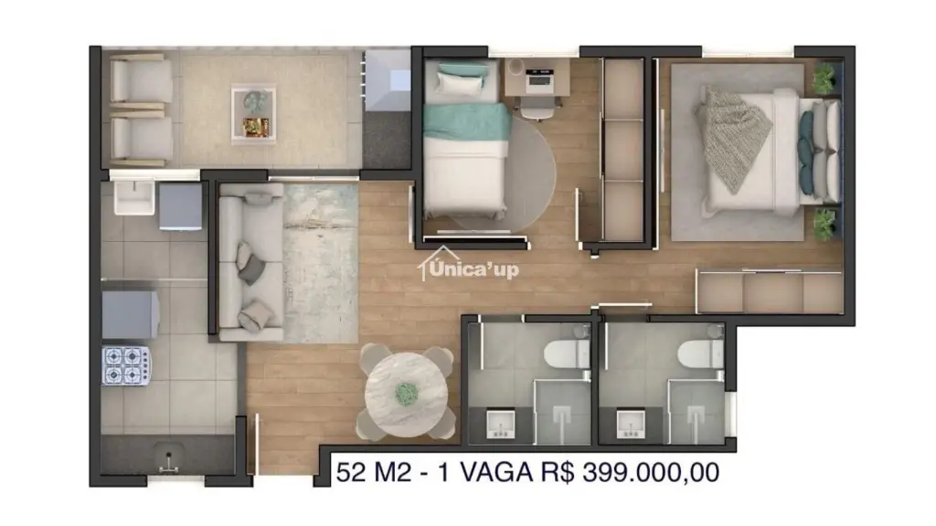 Apartamento (Apartamento Padrão) para Venda, 2 dorm(s), 1 suite(s), 1 vaga(s), 53 m²