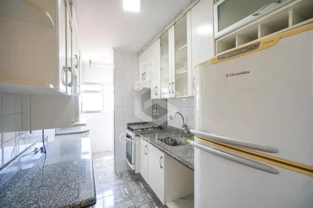 O apartamento está em ótimas condições, com piso porcelanato novo, pintura recente, armários nos dois quartos, cozinha planejada com amplo espaço de armazenamento e fogão embutido. Tudo pensado para trazer mais conforto e praticidade ao seu dia a dia.