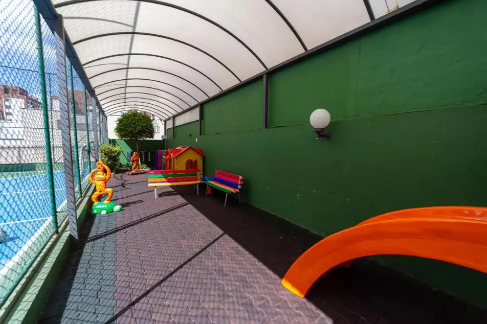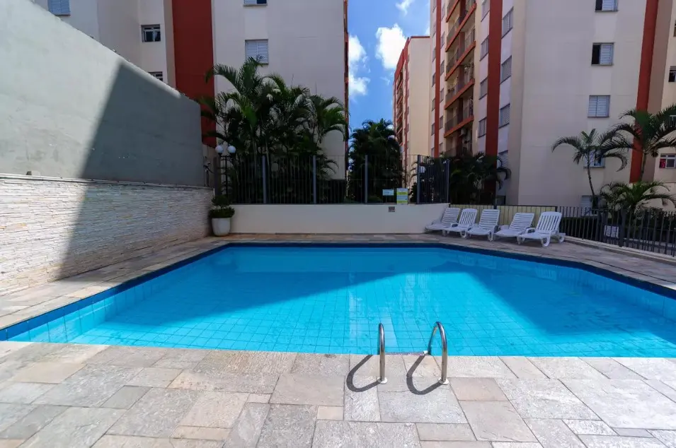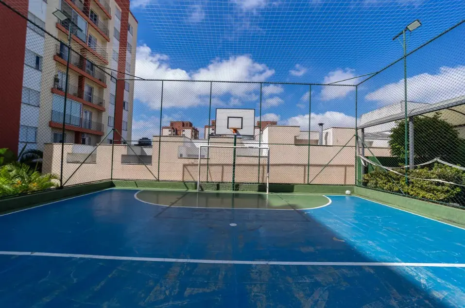 Lazer com piscina, salão de festas, playground, quadra poliesportiva