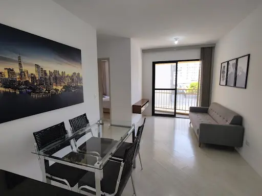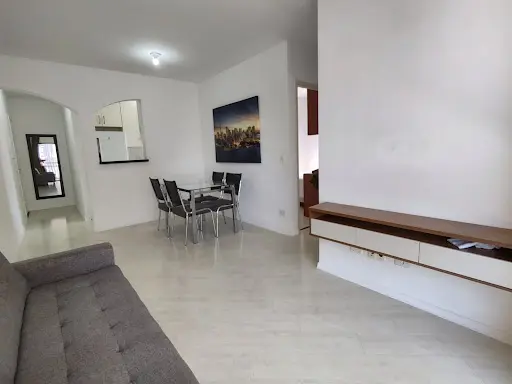 Apartamento com 2 dormitórios, sala ampla com sacada, banheiro com box de vidro, cozinha planejada, area de serviço e vaga de garagem.