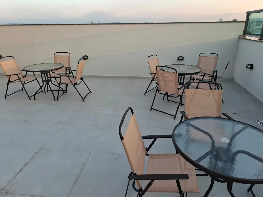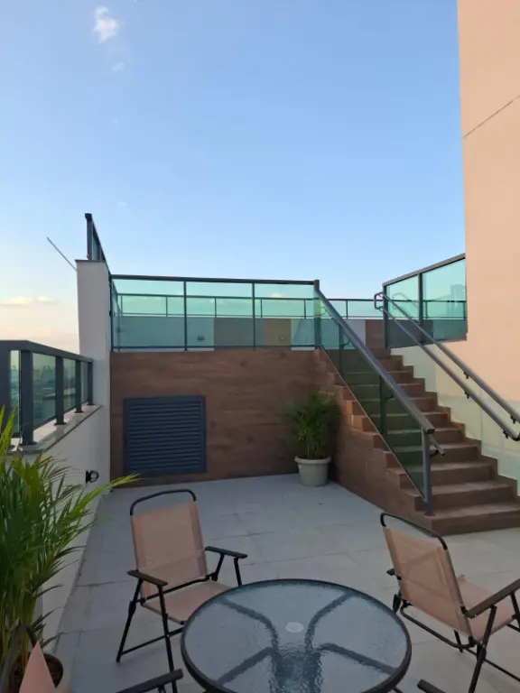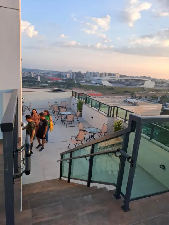 Diferenciais Unidades com opções de 0 e 1 vagas de garagem Área de Serviço e Cozinha com ventilação natural Gerador de Emergência para as áreas comuns Estrutura em concreto armado Varanda integrada Pontos para AR condicionado Piso do terraço no nível da sala Janelas com persianas integradas Ventilação natural nos banheiros Varanda com pontos para churrasqueiras do tipo grill eletrica