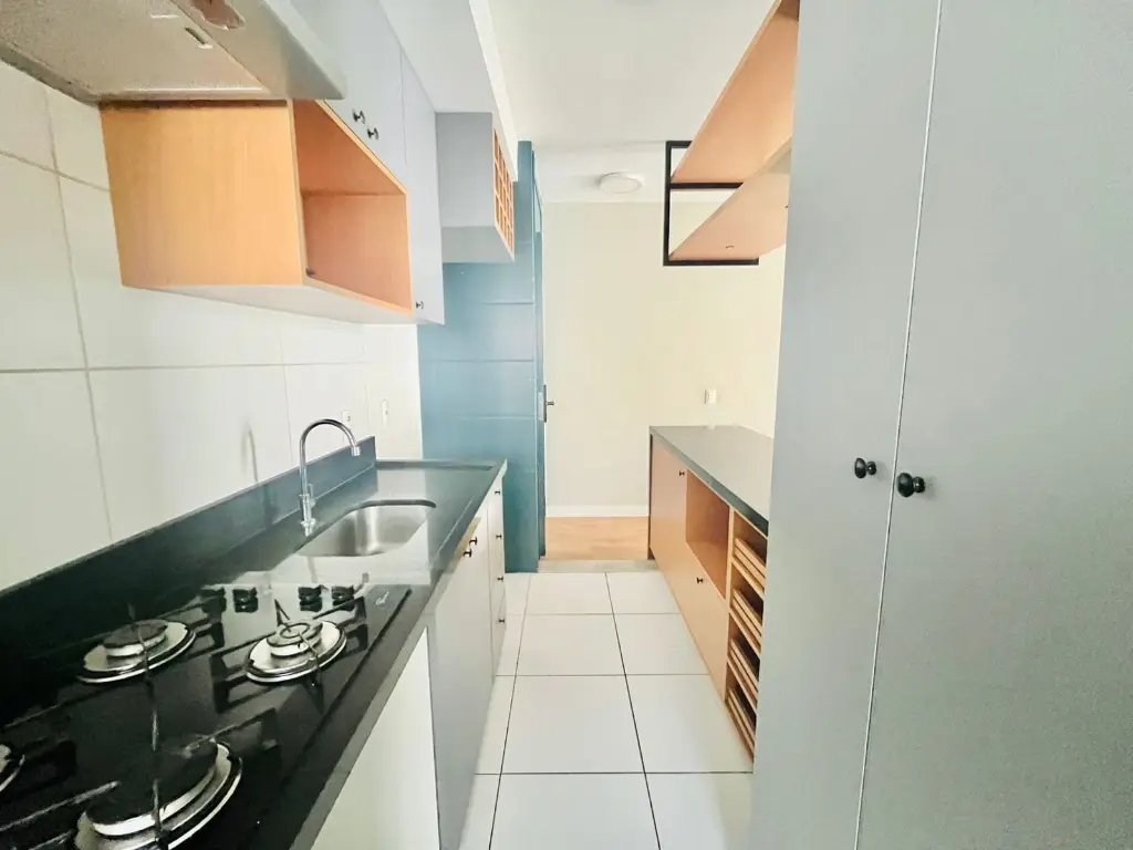 Apartamento com 60 metros privativos distribuídos em 3 dormitórios sendo 1 suíte, banheiro social, ambos com iluminação e ventilação natural, sala com 2 ambientes (TV/jantar), varanda com opção de churrasqueira elétrica ou à carvão ecológica, cozinha americana e área de serviço.