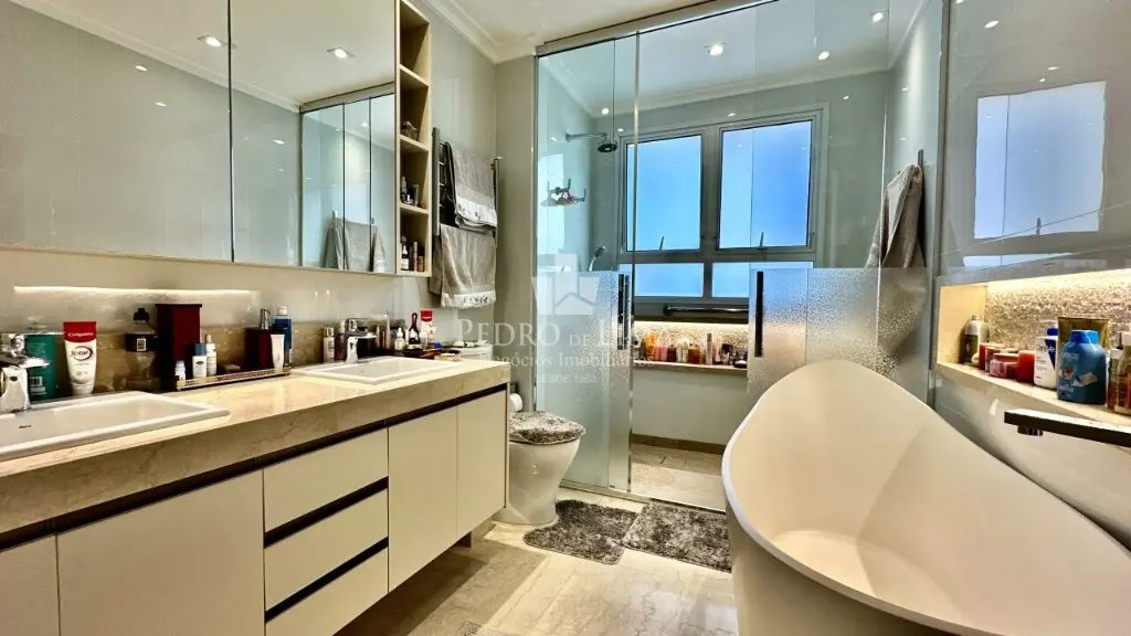 Descubra o equilíbrio perfeito entre luxo, conforto e localização privilegiada. Este apartamento de alto padrão foi projetado para quem valoriza o que há de melhor em design, acabamento e qualidade de vida. Com 218m² de área privativa, 3 suítes amplas, varanda gourmet totalmente equipada e com vista espetacular, acabamentos nobres. 4 vagas de garagem e amplo depósito privativo.
