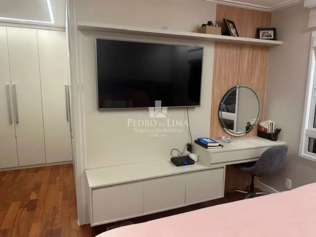 Apartamento todo reformado e mobiliado, 242m2 de área útil, 4 suítes, sala para três ambientes integrada com a varanda gourmet, lavabo, cozinha americana e dependêncoa para colaboradores. Possui 4 vagas de garagem + depósito privativo.