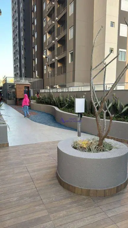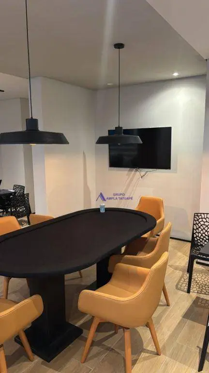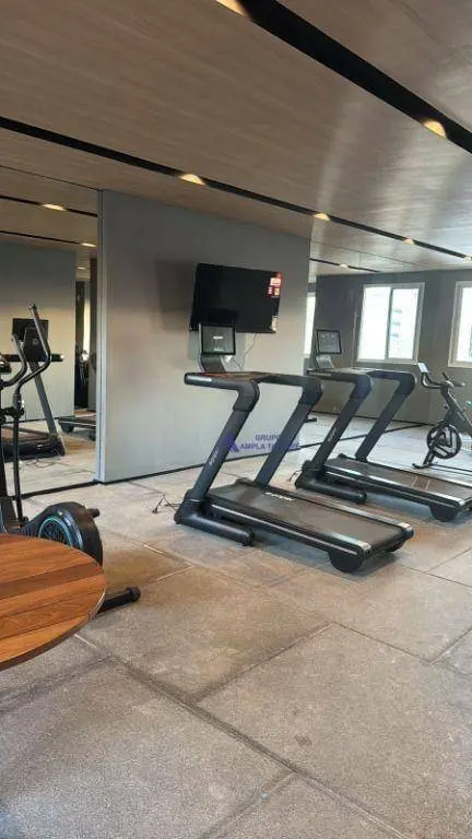 O apartamento de 48 m² conta com 2 dormitórios, 1 banheiro, sala de estar e jantar com sacada e 1 vaga de garagem rotativa.