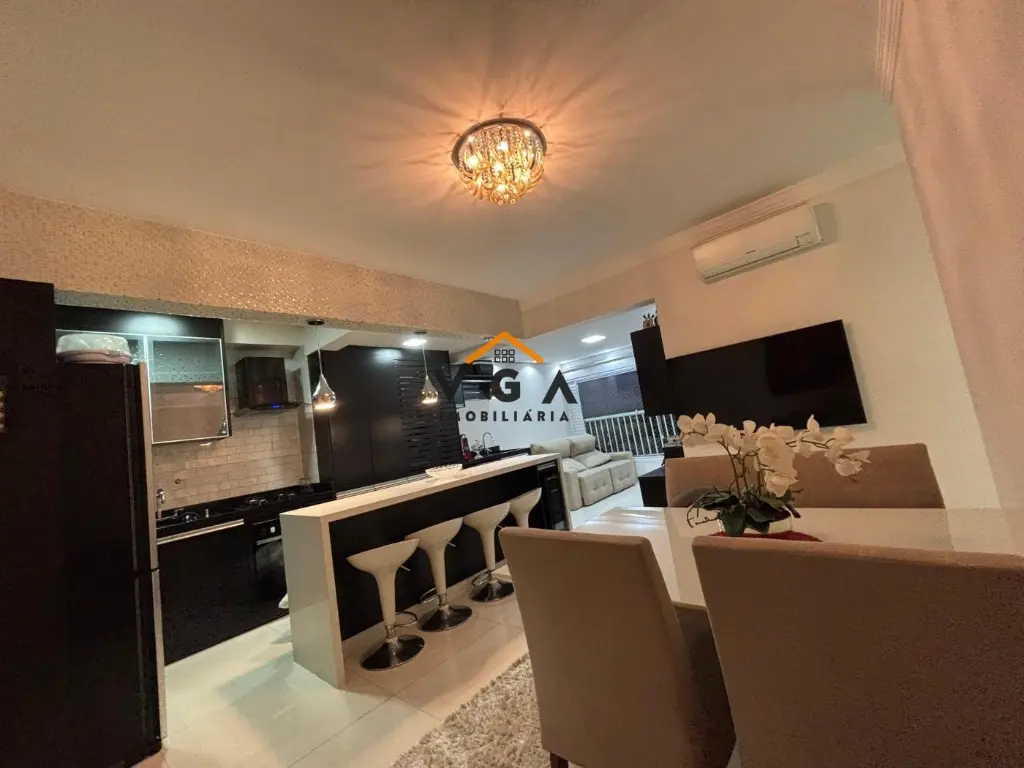 - Observação: São 58 m², 2 quartos e 1 banheiro. Uma vaga de garagem tamanho G, demarcada na escritura. 16º andar (ÚLTIMO), torre única. Todos os móveis são planejados, pisos e acabamentos de primeira, tudo em estado de conservação como novo. Piso nivelado e paredes de fechamentos removidas. São três ambientes integrados: Cozinha, Sala e Sala de Jantar e com opção de duas configurações. AR CONDICIONADO em TODOS os cômodos!