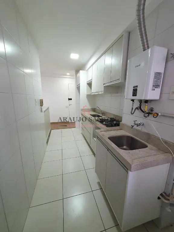 Piso laminado, armários planejados na cozinha com cooktop e banheiros, box blindex, porta com fechadura eletrônica.