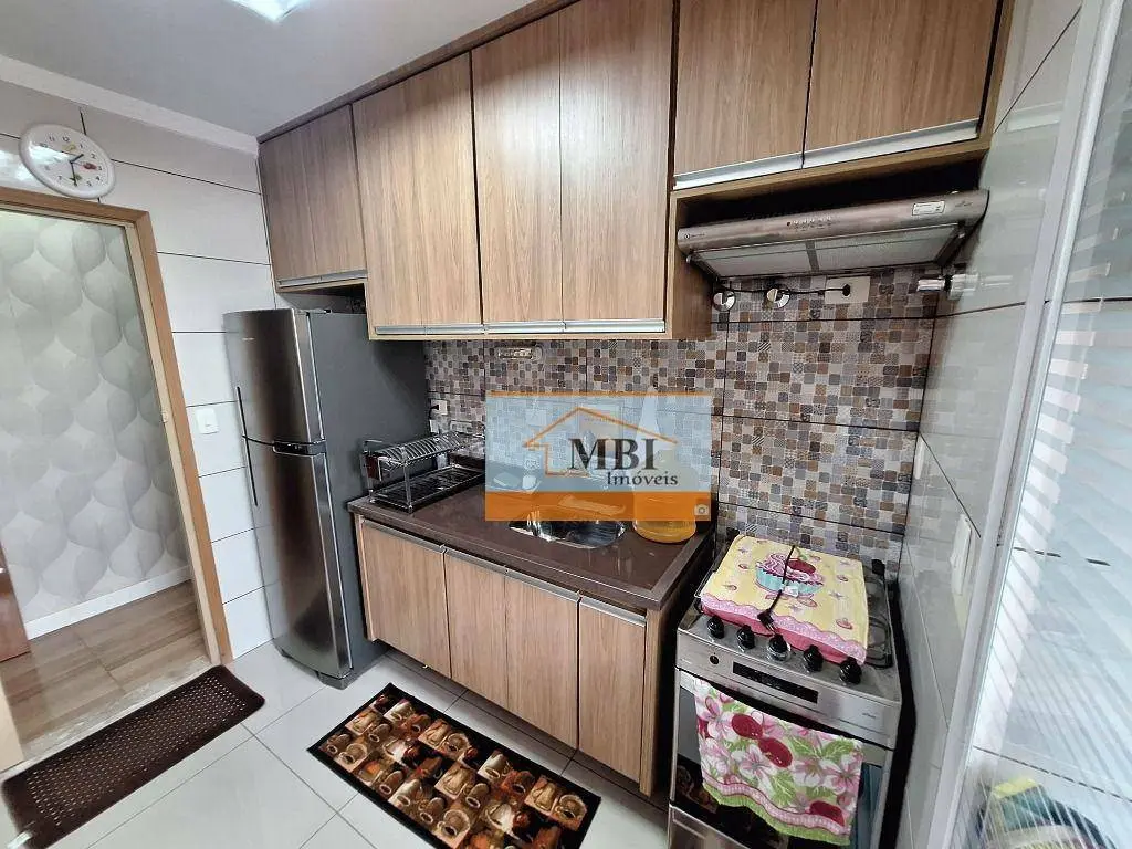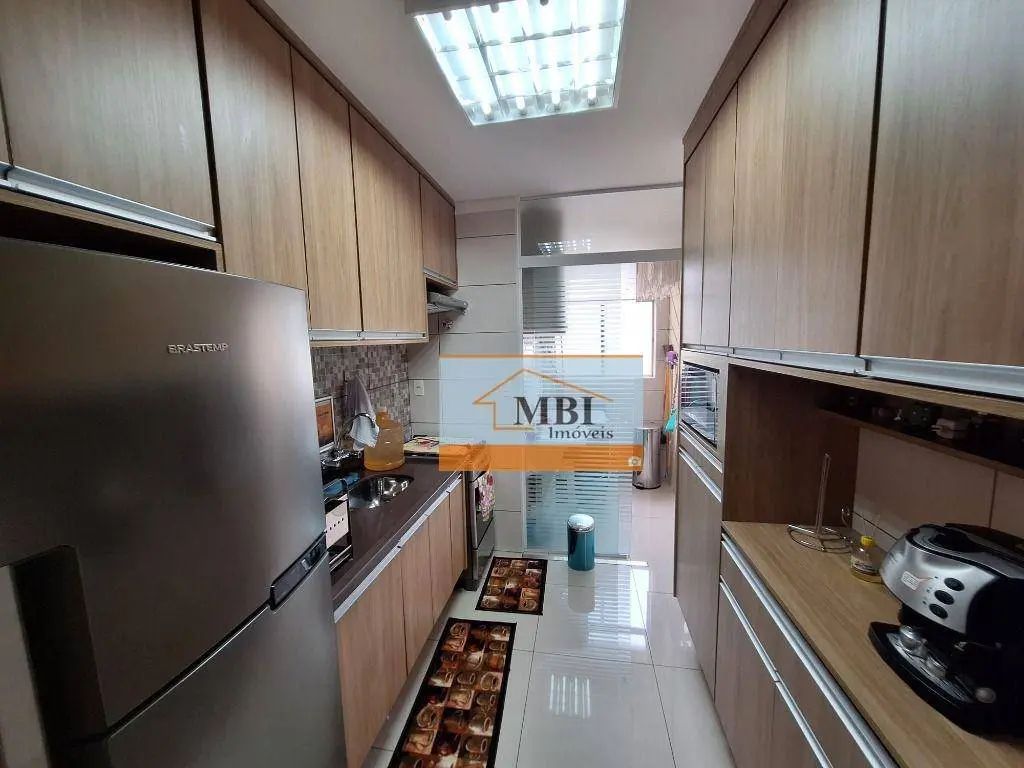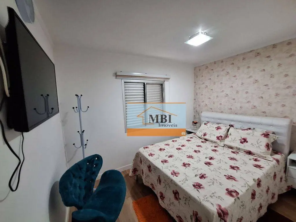 Apartamento com planta oficial 3 dormitórios, porém foi modificado e 1 dormitório foi transformado em closet, 2 dormitórios, sala ampla, cozinha planejada com geladeira e fogão, área de serviço com armários, dormitórios de casal e de solteiro, sacada.