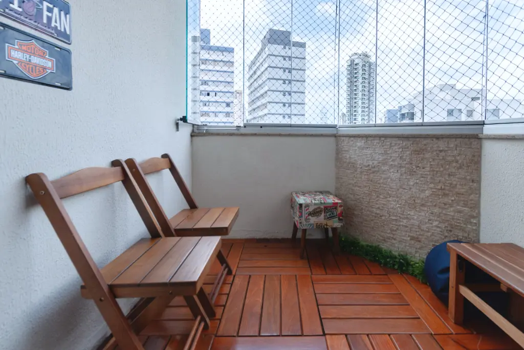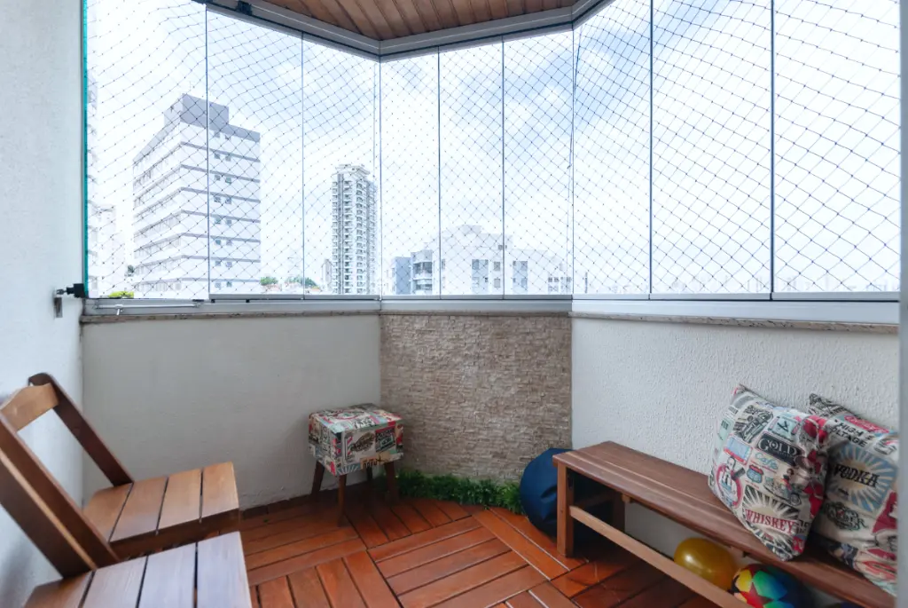 A varanda convida para momentos de pausa e contemplação, com uma vista agradável que torna o lar ainda mais especial.