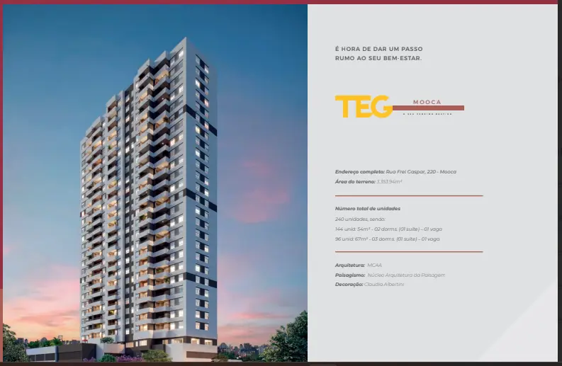 Lindo Apartamento novo, nunca habitado na Mooca 350 mtrs do metrô Ref: 4400 - Mooca - 54.m2 útil - 2 dormitórios sendo uma suíte, sala 2 ambientes, 1 banheiro social, cozinha e área de serviço, preparado para ar condicionado, sacada. **As informações e a disponibilidade dos imóveis acima são de responsabilidade dos proprietários dos mesmos e poderão ser alteradas a qualquer momento devendo sempre serem confirmadas com a equipe de atendimento webgestor766.** - Atualizado 04/11/2025
