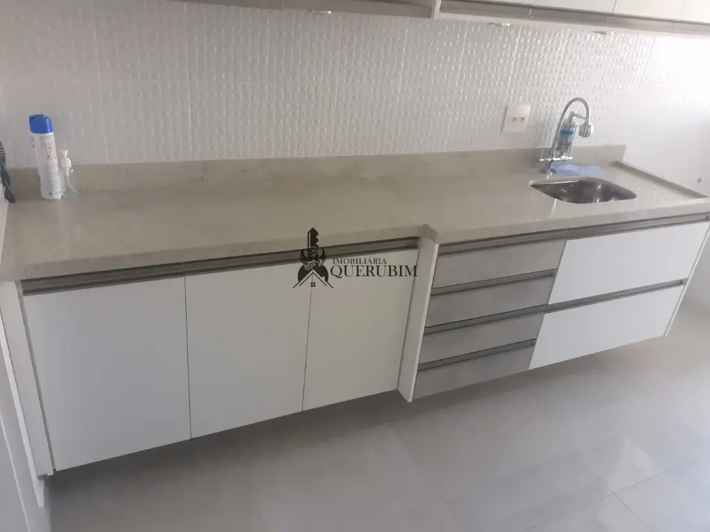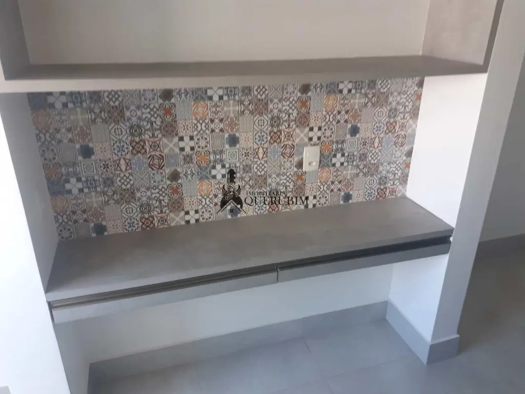 A cozinha é funcional e bem equipada, com armários planejados, bancada e azulejos decorativos, além de: