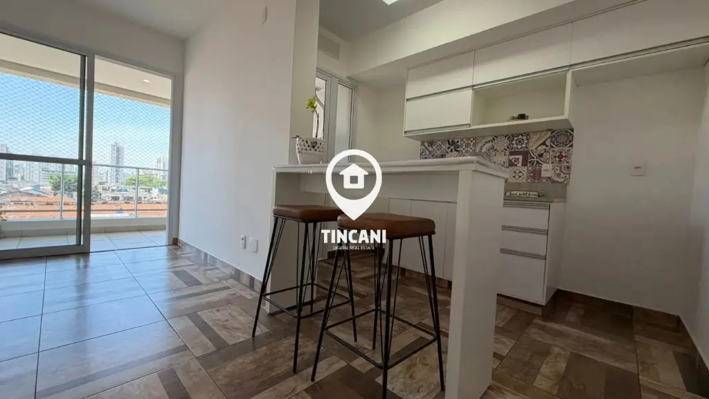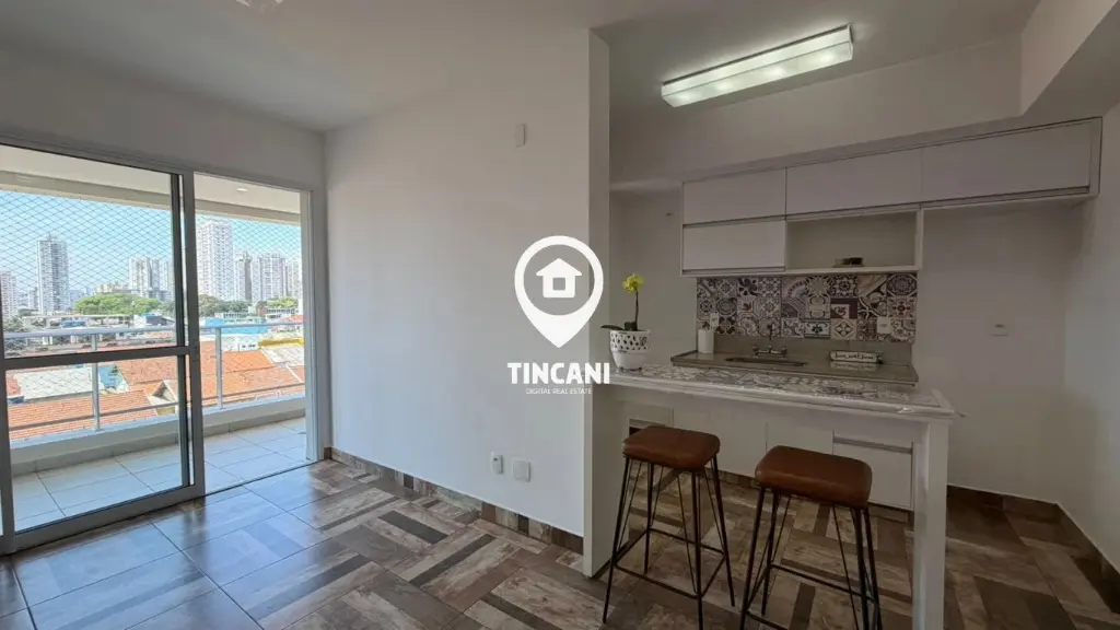 Charmoso apartamento com 50 m², 1 dormitório com armário, cozinha americana planejada, sala com excelente iluminação natural e piso frio imitando madeira. Banheiro com box de vidro e acabamento de pintura impecável. Conta ainda com 1 vaga de garagem e sacada para aproveitar os melhores momentos do dia.