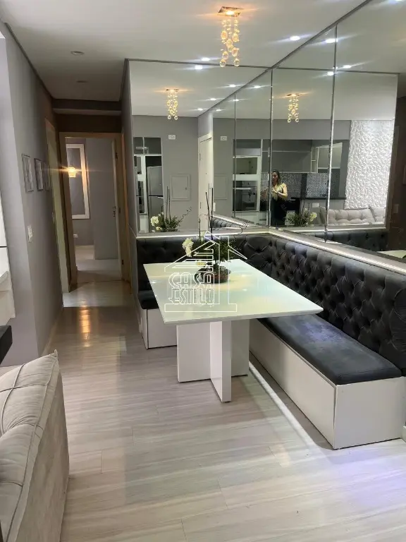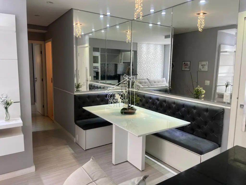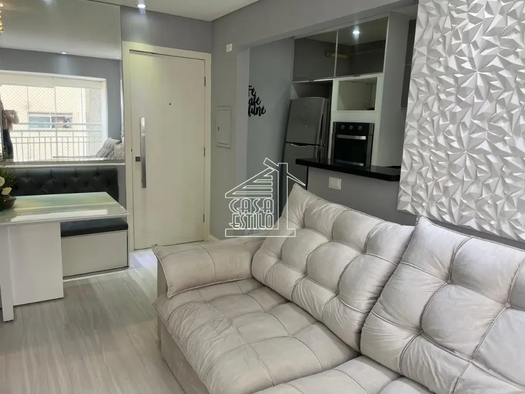 Apartamento de 2 dormitórios, uma suíte, sala 2 ambientes, cozinha americana, área de serviço, 1 vaga de garagem. Lazer completo.
