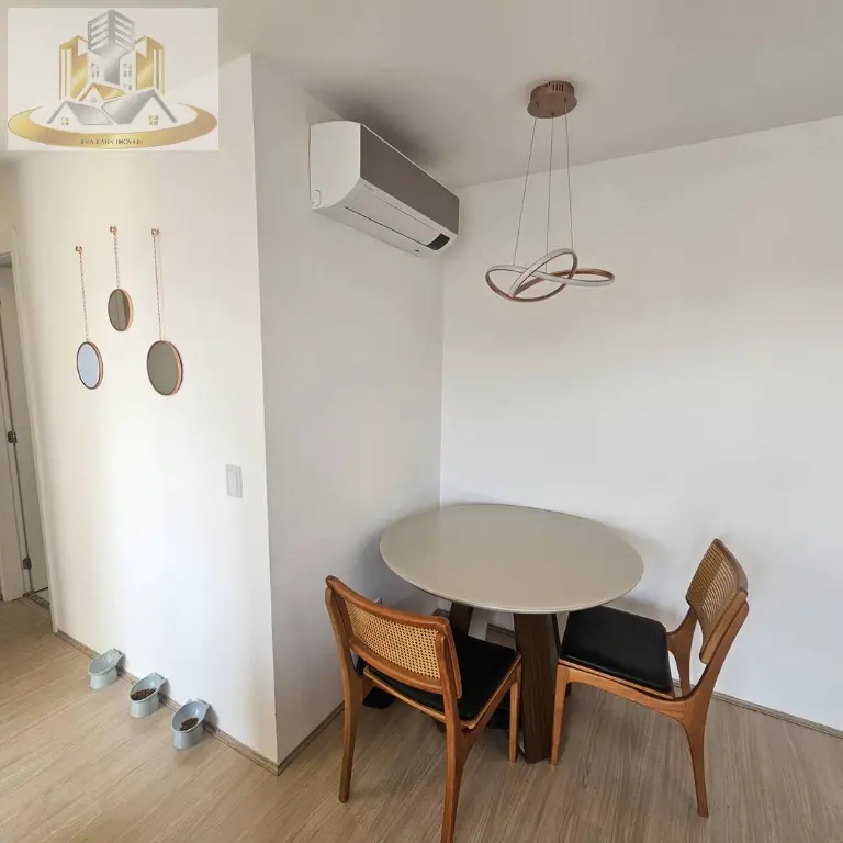 Destaque para os móveis planejados novos, que incluem a cozinha, a sala e a lavanderia. A cozinha é equipada com pedra em Quartzo Branco, cooktop por indução e forno elétrico da Electrolux, tudo de alta qualidade e funcionalidade. Para o conforto térmico, o ar-condicionado Samsung Windfree Connect está instalado tanto na sala quanto no quarto.