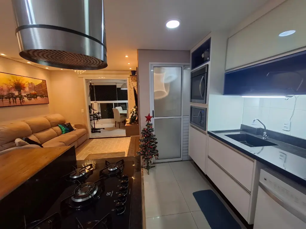 Apartamento de 72m², com 2 quartos sendo 1 suíte, varanda gourmet, armários embutidos, cooktop, forno e micro-ondas embutidos, 1 vaga de garagem e depósito.