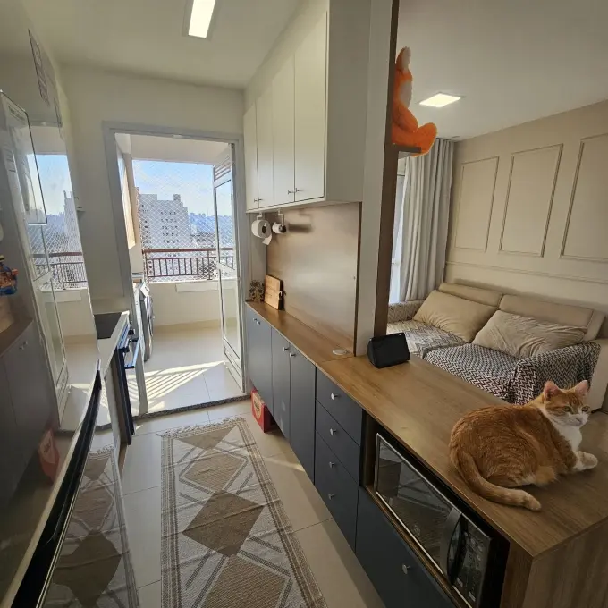 Lindo apartamento de 54m² recém-entregue, com sala, cozinha americana, varanda ampla, 2 banheiros e 2 quartos sendo um suíte, com uma vaga de garagem coberta.