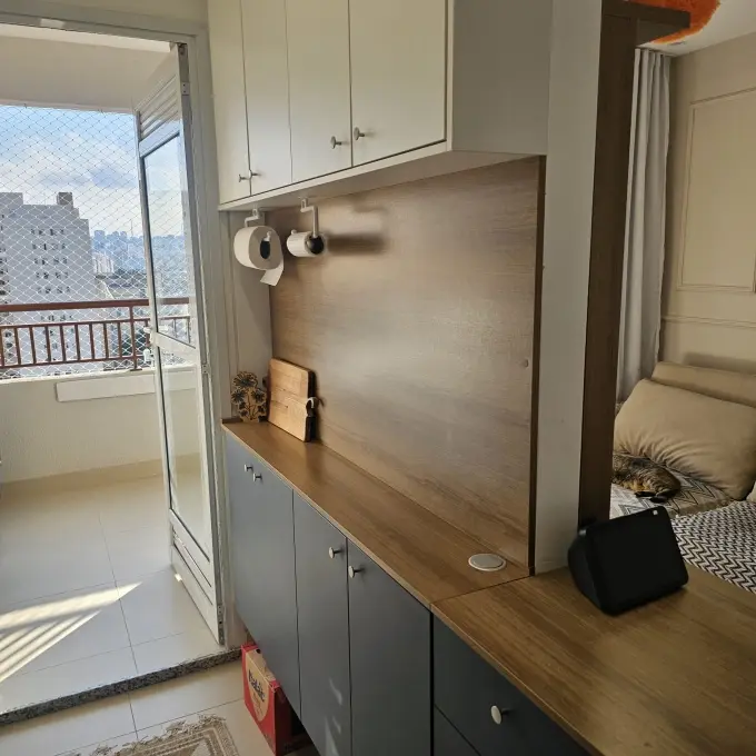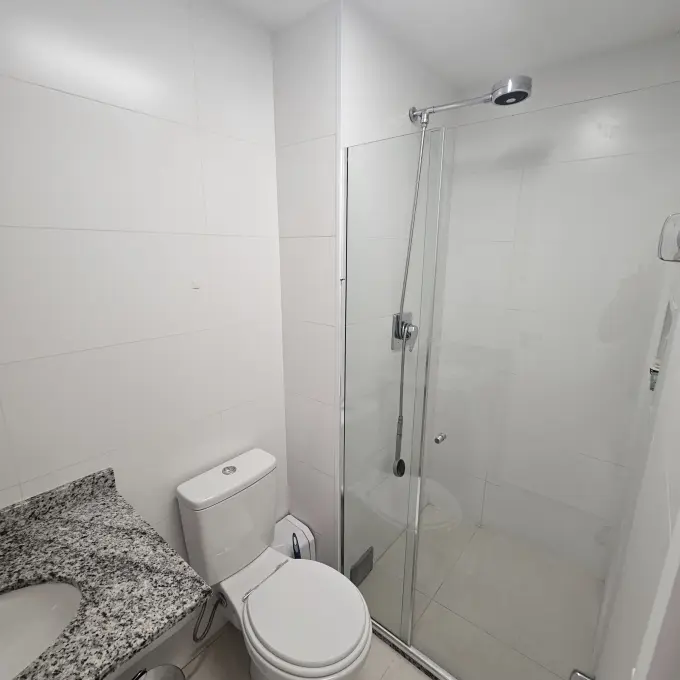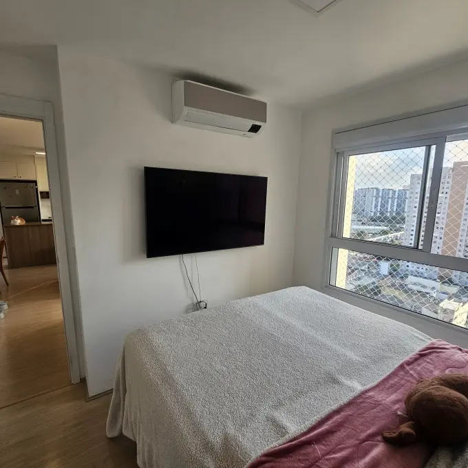 Ar condicionado samsung windfree connect na sala e no quarto, apartamento totalmente automatizado com interruptores inteligentes e controle de climatização por Alexa, fechadura digital na porta. Aquecedor a gás 26L da marca Rheem e duchas Docol TechnoShower com monocromandos nos banheiros, 15º andar, vista livre e sol da tarde.