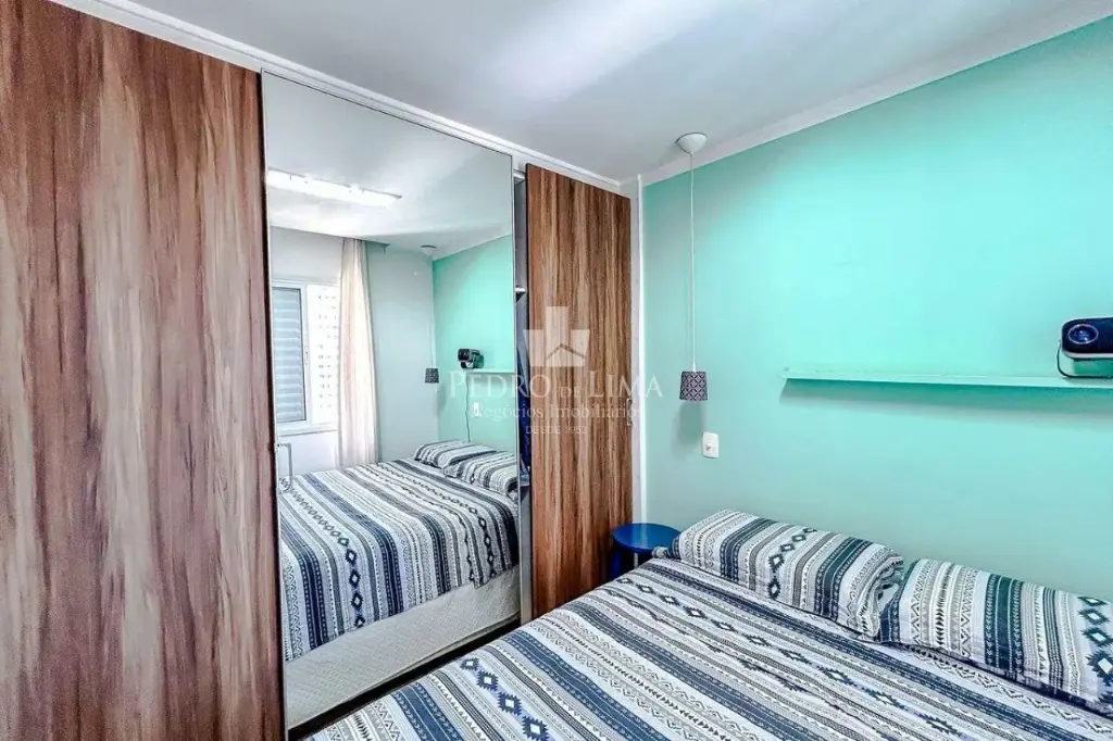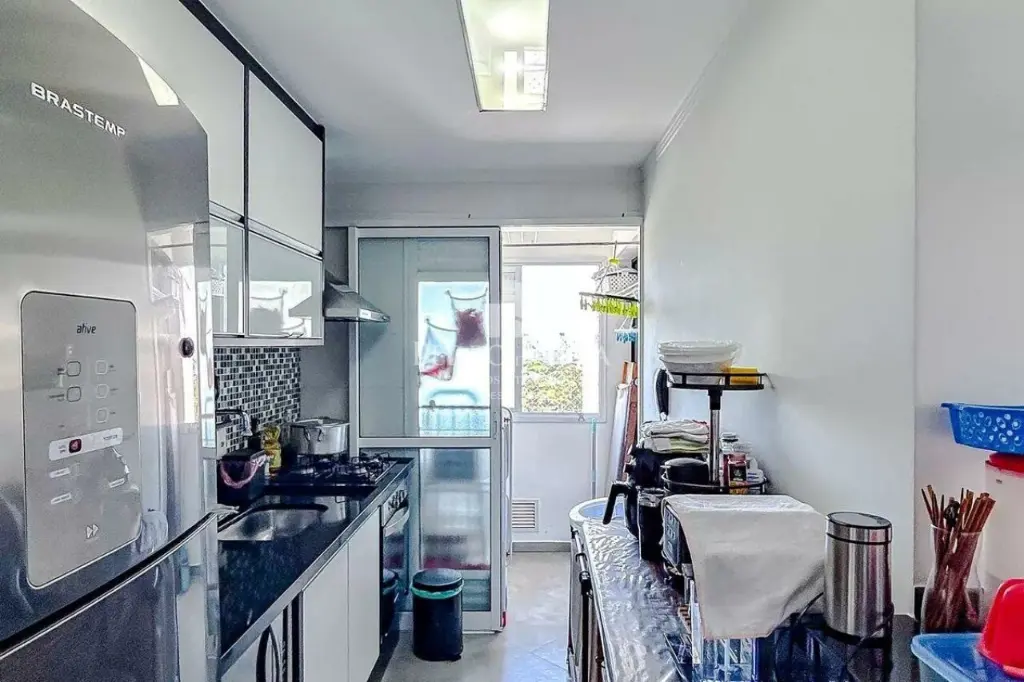 Sala ampliada integrando a sala, cozinha americana e terceiro dormitório reversível. Piso porcelanato, cozinha com planejados, área de serviço. Planta atual 2 dormitórios sendo 1 suíte, 1 banheiro social. 1 vaga de garagem coberta.