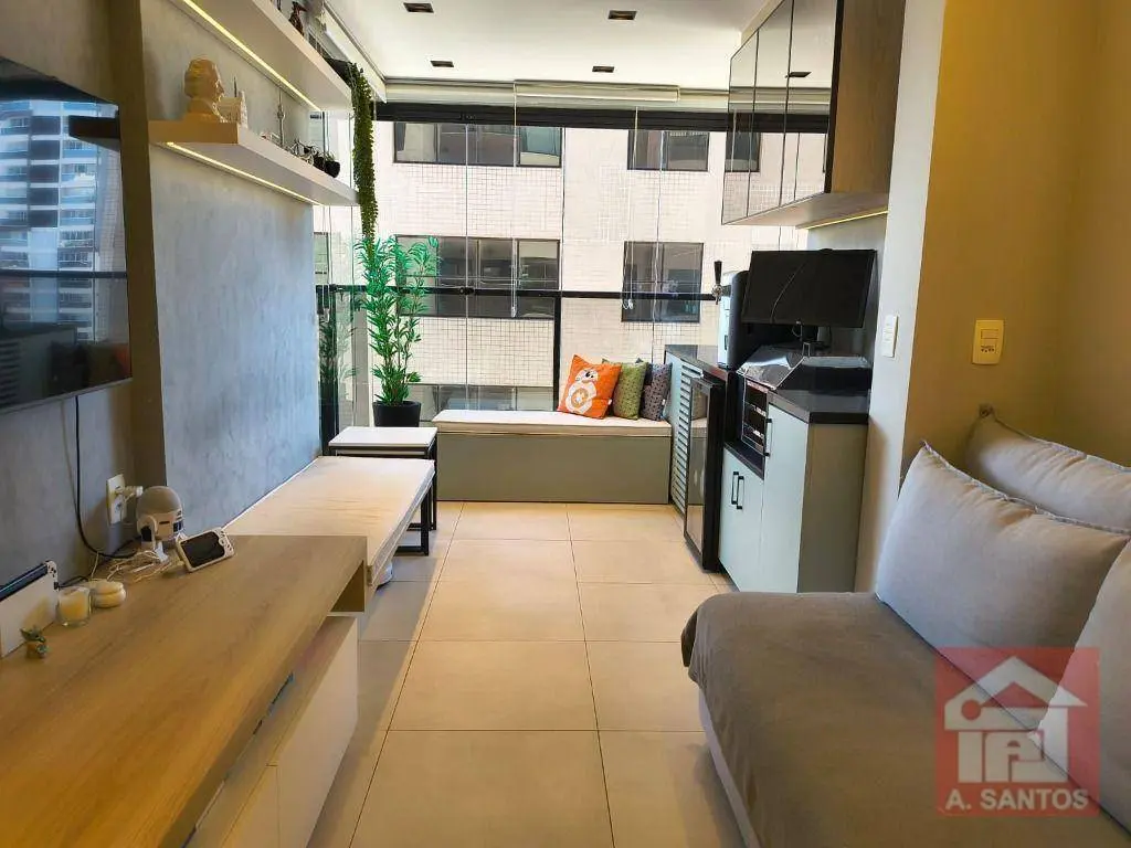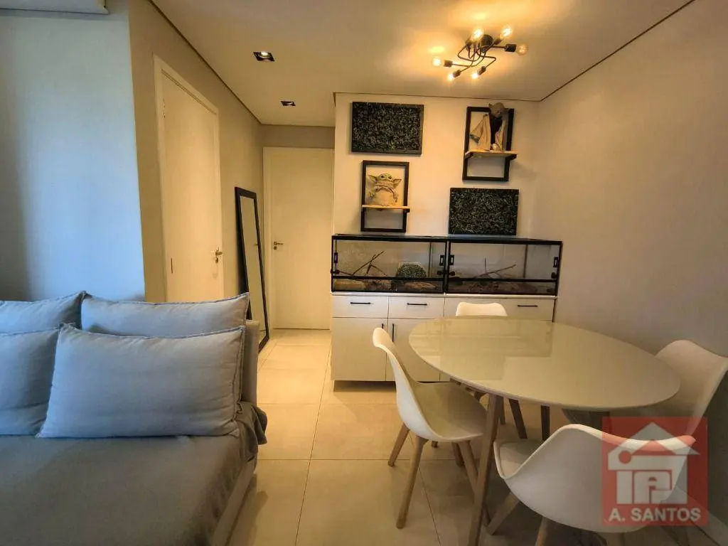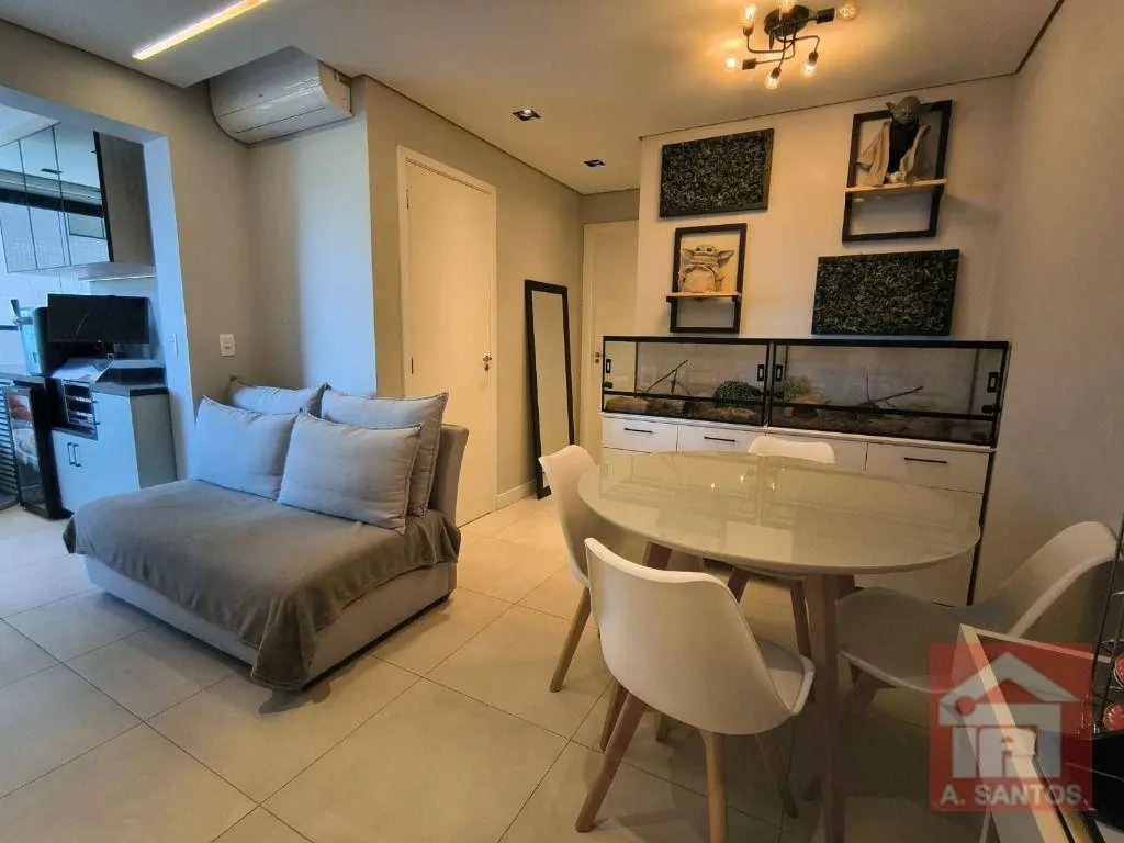 O imóvel dispõe de 2 dormitórios, bem iluminados e arejados, sendo um deles a suíte. Sala aconchegante para dois ambientes, perfeita para receber amigos e familiares. A varanda foi integrada a sala, ampliando o apartamento e com espaço para a churrasqueira elétrica. A cozinha americana é muito funcional com bastante armários. A área de serviço é equipada, e o apartamento tem aquecedor a gás e ar condicionado. 1 vaga de garagem. Todos os ambientes estão mobiliados, trazendo praticidade e economia para quem deseja se mudar sem preocupações.