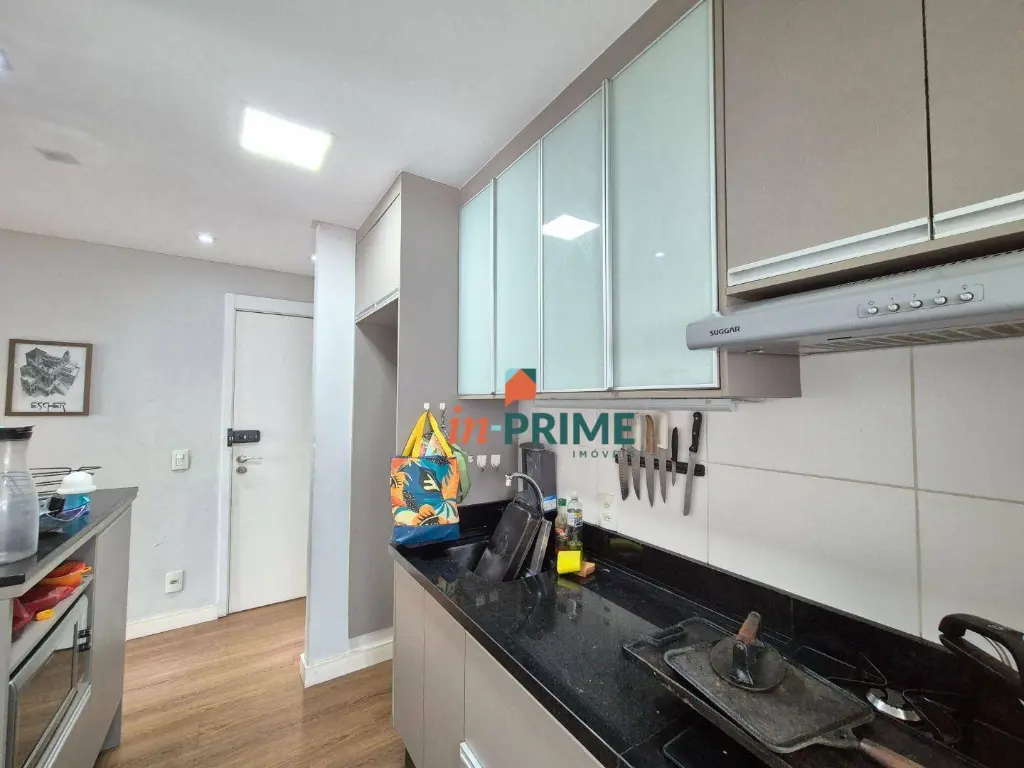 Excelente apartamento. Varanda Andar alto Vista Parcialmente A Sacada já encontra-se com fechamento em vidros. Sala integrada com sacada. Possui 02 dormitórios sendo 01 suíte. Closet. Armários planejados na cozinha. Área de Serviço isolada da cozinha. 01 vaga de garagem livre.