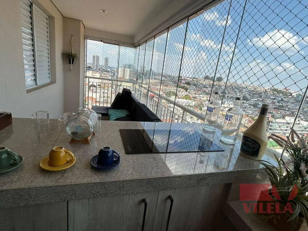 3 dormitórios, sendo 1 suíte, 1 banheiro, varanda gourmet, sala com dois ambientes, cozinha, 1 vaga de garagem, apartamento semi mobiliado, com armários na cozinha, banheiros, e quartos, condomínio completo.