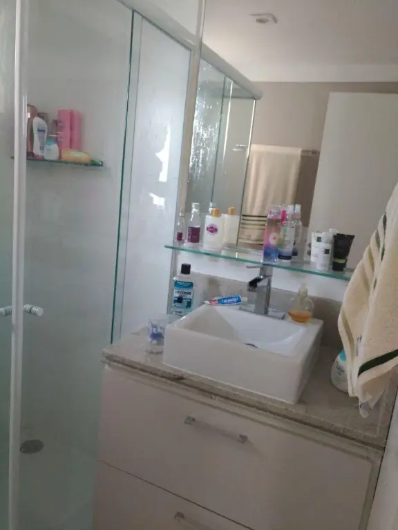 Banheiros com box de vidro já instalados e gabinetes