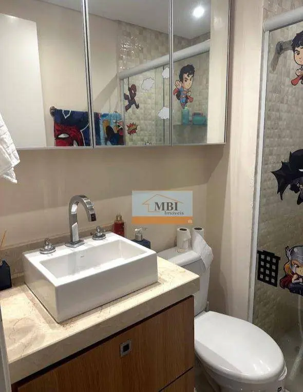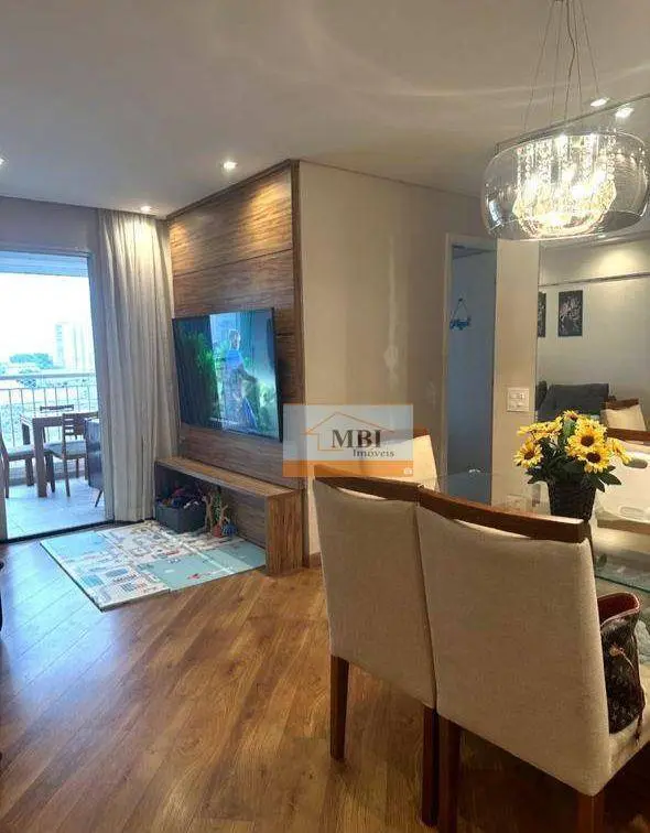Composto por 3 dormitórios sendo 1 suíte 2 vagas de garagem, sala ampla com teto em sanca de gesso, parede revestida com canjiquinha, piso em porcelanato, cozinha planejada com piso em porcelanato, terraço gourmet envidraçado e persianas blackout, banheiros com box de vidro, armários, espelhos, gabinetes, parte do box com revestimento diferenciado, pias em cuba sobreposta, dormitórios com planejados, piso laminado.
