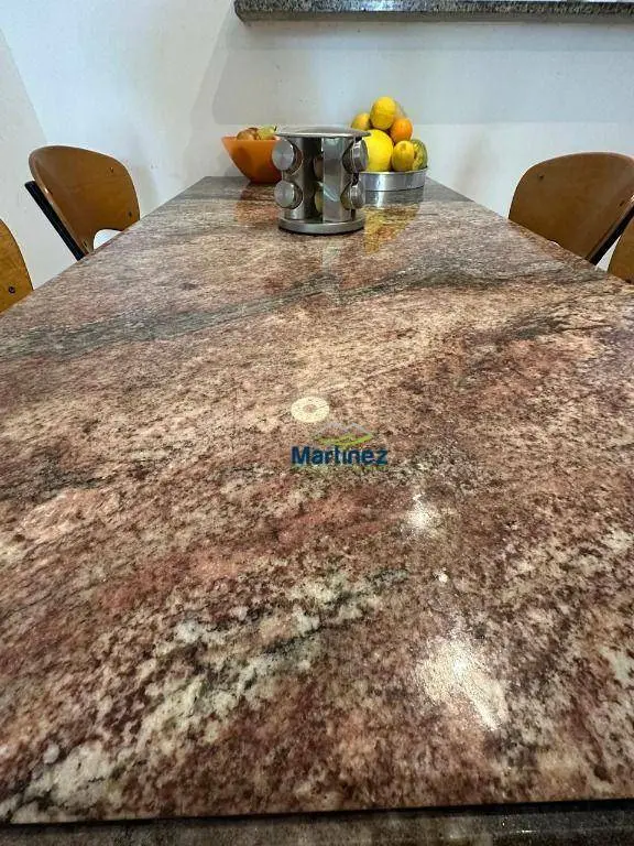 Mesa em granito com cadeiras ergonômicas